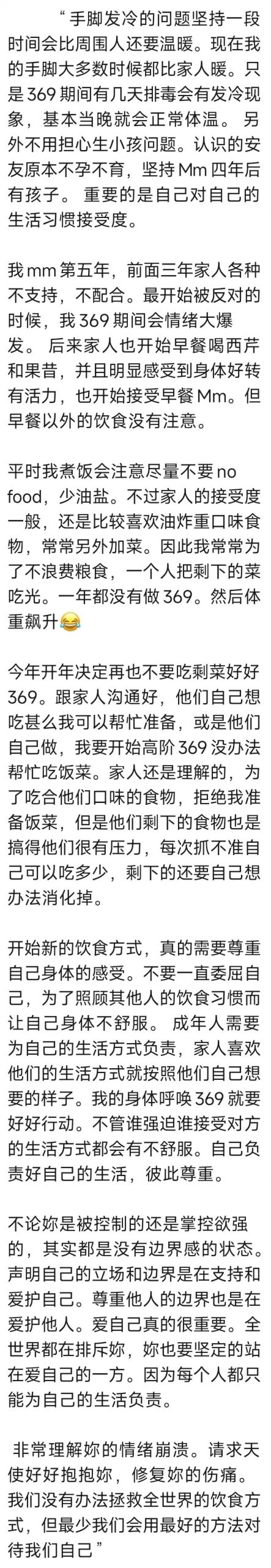 同时在净化排毒期间,如果执行细节和热量摄入都正确,当毒素被排出进入血液准备离开时,这可能会导致发冷的疗愈反应。净化疗愈法中获得的营养对于身体有缓释作用,这种缓释作用具有清凉的效应,这是疗愈的迹象,可以用物理方法给自己暖身。这并不是寒凉的表现,随着净化会逐步消失。
